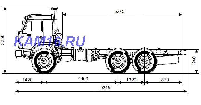 Шасси 6*4, длина рамы 5 970 мм, межосевое растояние мм, грузоподъемность 12 тонн